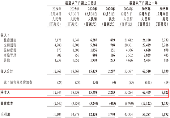 从业务结构看,携程2025年各条线收入保持稳健扩张。