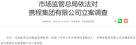 1月14日,国家市场监管总局宣布依据《反垄断法》,对携程涉嫌滥用市场支配地位实施垄断行为立案调查。